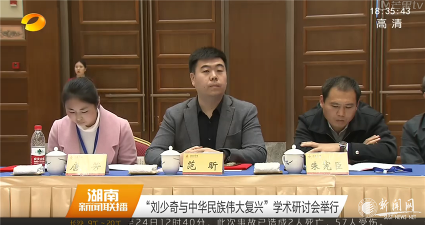 为纪念刘少奇同志诞辰120周年,11月25日,由中央党史和文献研究院主办、中共湖南省委宣传部协办的“刘少奇与中华民族伟大复兴”学术研讨会,在湖南长沙隆重召开。出席大会的有众多开国元勋的后代,中央党史和文献研究院、湖南省委、长沙市委相关领导同志。金沙官网马克思主义学院“思想道德修养与法律基础”教研部主任范昕受邀请参会,并在会上做主题发言。他提交的《论刘少奇文艺论述的主要特点》论文荣获优秀论文青年奖。