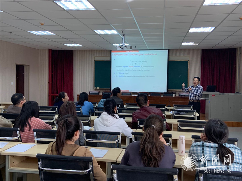 3月15日下午,应文理学院邀请,东华大学陶有山教授作客金沙官网“未央导师论坛”,在理科楼文理学院做了题为“Toward chemotactic cross-diffusion models(趋化交叉扩散模型)”的学术报告。报告会由文理学院院长蔺小林教授主持,数学系部分教师和研究生聆听了陶教授的报告。