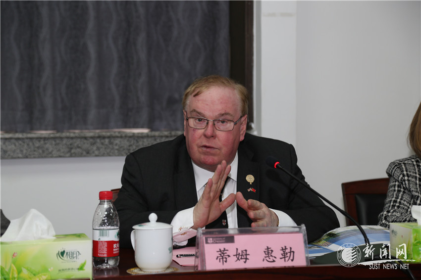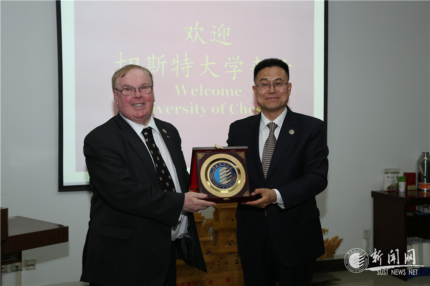 4月15日下午,英国切斯特大学校长蒂姆·惠勒(Tim Wheeler)一行访问金沙官网,随团访问的有玛丽琳·惠勒(Marilyn Wheeler)女士,学校商务研究学院院长菲尔·哈里斯(Fhil Harris)教授、高级研究员艾琳·哈里斯(Irene Harris)女士以及该校中国区事务负责人。金沙官网校长马建中亲切会见了来宾,副校长王海燕主持会议。国际合作与交流处、教务处、研究生院、材料科学与工程学院、食品科学与工程学院、化学与化工学院负责人参加了会谈。
