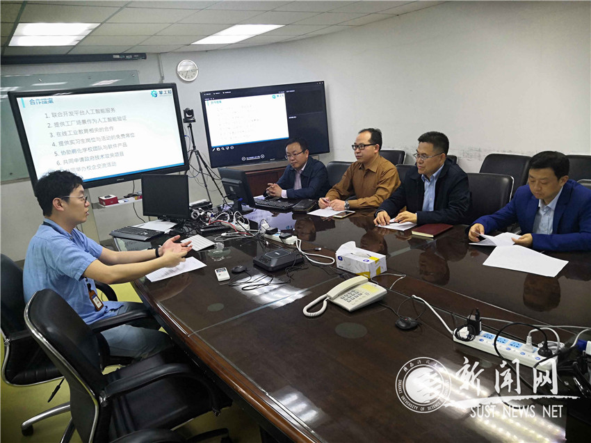 在富士康科技集团旗下的富士康工业互联网股份有限公司和深圳掌工知科技服务有限公司,马建中一行参观了公司展示厅、精密装备零部件制造车间、研发中心及无土栽培绿色蔬菜种植工厂等部门。考察期间,马建中等与掌工知科技服务有限公司总经理宋中堂就校企战略合作进行了深入磋商,重点围绕人工智能服务平台联合开发、人工智能工厂场景服务提供、在线工业教育合作、实习生岗位提供和研究生联合培养、学校团队与软件产品孵化协助、政府技术攻关项目联合申报、校企交流活动联合举办等七个方面达成合作意向。