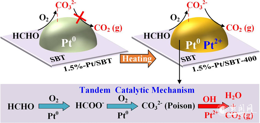 活性位点引导的串联催化降解甲醛机理示意图