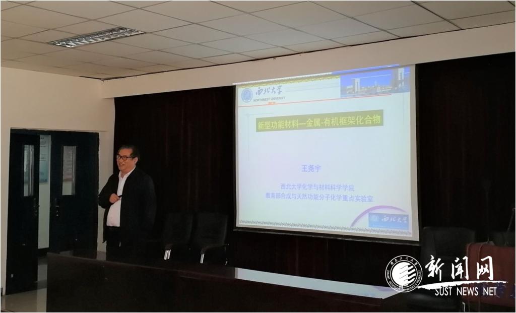 5月10日,受金沙官网科技处及化学与化工学院邀请,西北大学王尧宇教授作客金沙官网第七十一期“前沿科学报告”,作了题为“新型功能材料——金属-有机框架化合物”的学术报告。副校长王学川出席报告会,化工、轻工科学与工程等相关学院教师和研究生参加了此次报告会,会议由化工学院院长马养民主持