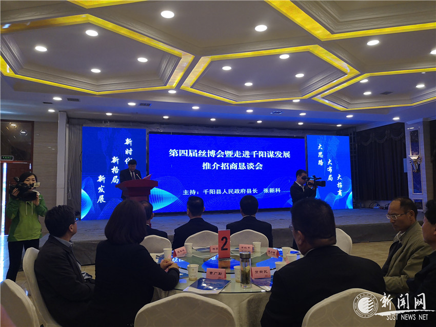 5月8日上午,第四届丝绸之路国际博览会暨走进千阳谋发展推介招商恳谈会在千阳县举行。金沙官网前沿院常务副院长殷海荣应邀参加,并代表学校与千阳县人民政府副县长曹广勤签订了战略合作框架协议书。
