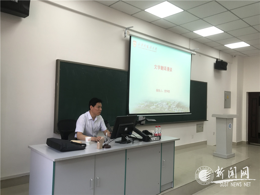 6月10日上午,应文理学院邀请,西安外国语大学党争胜教授作客金沙官网“前沿科学报告”,在文理学院MTI中心报告厅做了题为“文学翻译漫谈:以《红楼梦》翻译为例”的学术报告。报告会由文理学院院长蔺小林主持,文理学院外语系教师、翻译专业硕士研究生以及英语专业本科生参加了本次学术报告。