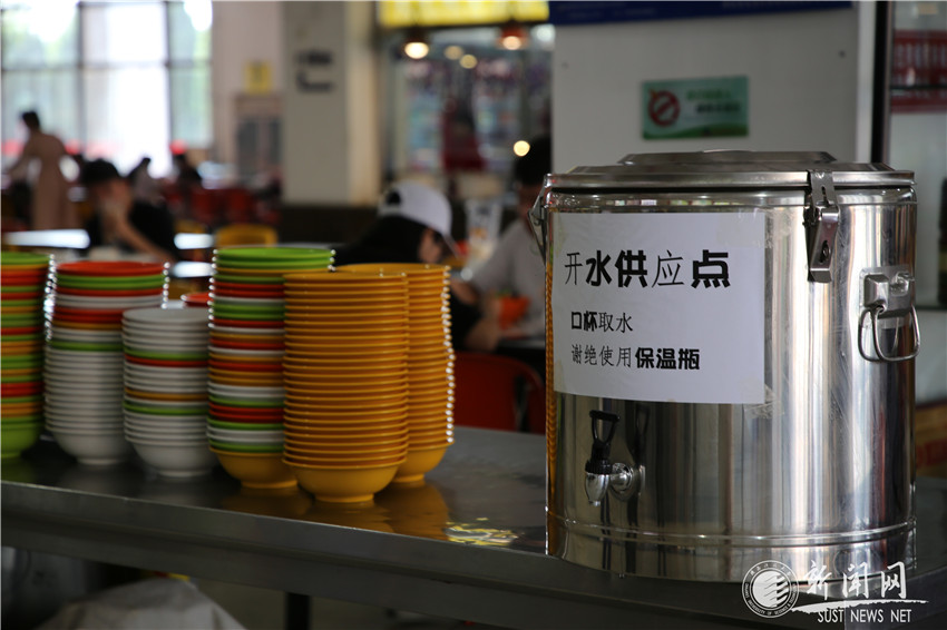 6月13日上午7点30分,饮食服务中心各餐厅已经储备好了一天所需用水,有效保障了食堂原材料、碗筷清洗、米饭蒸煮及烹饪制作的用水需求,并严格做到用水分类。同时,餐厅还在食堂大厅为学生们提供饮用水及绿豆汤。