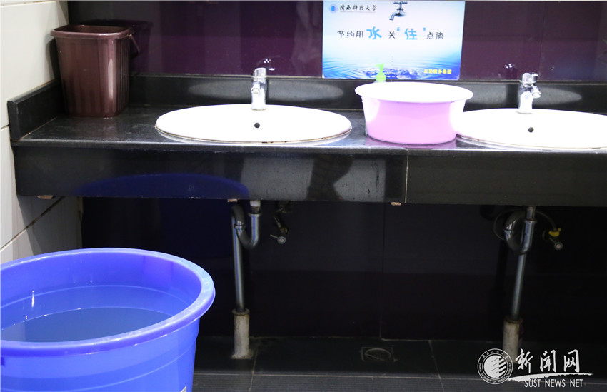 上午9点,逸夫楼、教学楼等区域卫生间已用大水桶备足用水,并根据实际需求随时给卫生间备水。