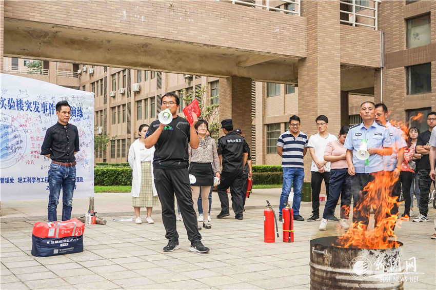 学校和各二级单位一直高度重视实验室安全工作,而应急演练是树立“安全第一”思想,提高师生安全防范自救能力和突发事件应急综合能力的有效手段。6月24日下午,由实验室与设备管理处、轻工科学与工程学院、保卫处、后勤集团校医院联合组织的2019年“安全生产月”实验楼突发事件疏散演练在实验楼1B举办。校长助理郑恩让、实验设备管理处副处长张海宁、保卫处处长助理杨军、轻工学院全体班子成员及150余名师生参与本次疏散演练。本次疏散演练主要针对实验室发生突发性事件的情况下,让实验楼内师生熟悉逃生路线,以达到有序、迅速的引导师生安全疏散,确保实验楼内师生的生命安全,提升师生的自救能力。