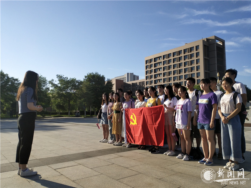 辅导员李丹带领全体党员进行入党宣誓,全体党员面向党旗,紧握右拳,饱含激情,庄严宣誓。