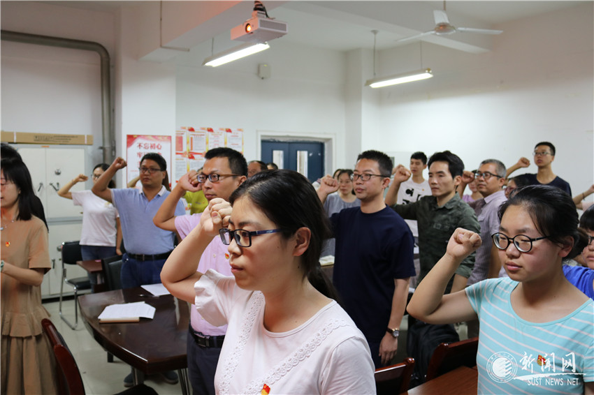 7月1日上午,环境学院在党员活动室举行庆祝建党98周年主题党日活动暨新入党党员宣誓仪式,学院党委委员、教工党支部委员、办公室党支部、全体辅导员、新一期预备党员和部分入党积极分子参加活动,活动由学院学生工作负责人赵伟锋主持。