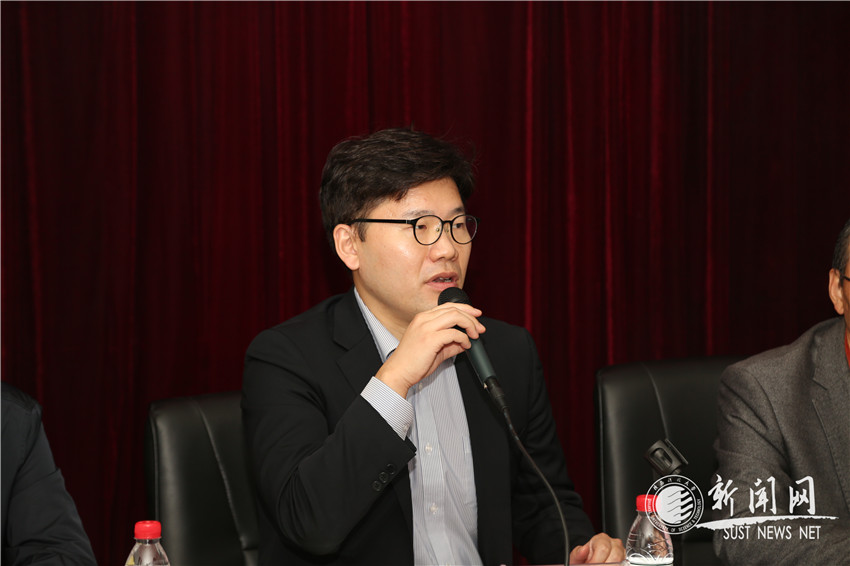 YongMook Kang(姜龍默)教授在发言中表示,很荣幸以特聘教授的身份加入到js3845金沙线路,感谢学校对他学术业绩的认可与信任。他提到,不久前他在美国刚刚拜访过诺贝尔化学奖获得者John B. Goodenough,深受启发。Goodenough教授97岁的高龄依旧坚持在教育教学的一线岗位,对待学生认真严苛,亲历亲为。他表示来陕科大之后,会尽快投入到科研工作,并且用心教授自己的每一位学生,为科大未来的发展贡献一份自己的力量。