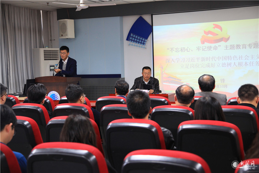 10月18日下午,校党委副书记温锋以“深入学习习近平新时代中国特色社会主义思想,立足岗位完成好立德树人根本任务”为题,为环境科学与工程学院党委、学工部党支部、团委党支部全体党员讲“不忘初心、牢记使命”主题教育专题党课。专题党课由学工部党支部书记李晓主持。