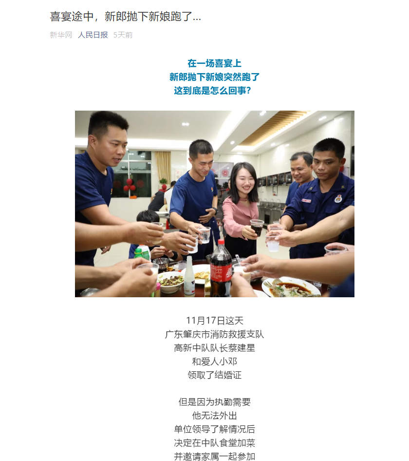 近日,人民日报等多家媒体上的一篇名为《喜宴途中,新郎抛下新娘跑了…》的文章刷爆朋友圈,获赞无数。这篇文章的主人公就是金沙官网2014届校友蔡建星。