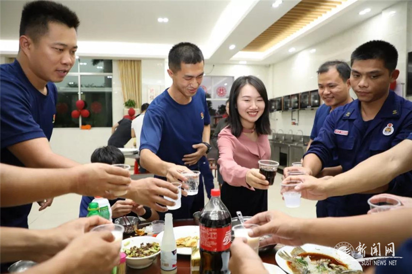 聚餐期间正当大家举起饮料为新人祝贺的时候