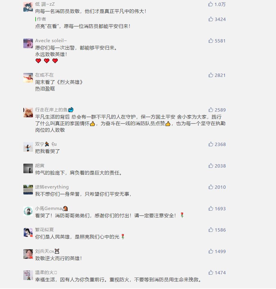 文章后面还讲述了很多消防官兵不畏艰险、穿越火线的真实故事,惹人泪目。
