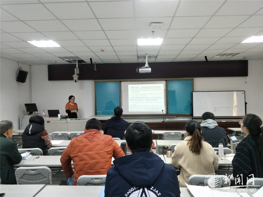 报告会上,邹秀芬教授结合生物实验背景,从实际问题出发,详细阐述了相关肿瘤模型的建立和分析,根据定性分析的结果,采用大量样本数据,最终用直观的数值模拟结果佐证相关结论。在此基础上,邹教授还结合自己的亲身经历,为在座师生讲述如何运用数学的思维和方法完成一项有意义的工作,让数学变得更加伟大、有趣。