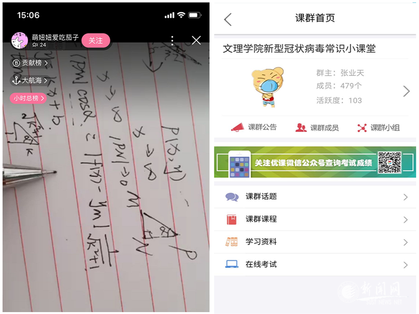 学院隔离帮扶工作组主动做好居家隔离教职工的思想引导和关心帮扶,主动帮助解决药品购买及转递等实际困难,综合管理工作组为教职工家属复工开具出入证明。学院组织任课教师按照教务处“防控学习两手抓”的思路和要求,通过各类线上课程平台资源加强自主学习,掌握信息化教育教学方法,为新学期开学做好全方位准备。积极组织填报2020年数学一级博士学位授权点申报材料,线上论证完善申报书,同时邀请校外专家对学科简介及方向特色凝练给予线上指导。有序开展2020年国家自然科学基金和国家社会科学基金申报工作,邀请省内外知名专家线上帮扶、指导和评阅申报书。学院易班工作站开设疫情防控主题优课,结合学生特点筛选防疫知识短视频进行推送;2019级班团两委主动作为,利用网络进行课程辅导直播,组织开展“打赢抗疫战,全家总动员”活动,带着父母一起为武汉加油,为中国加油。