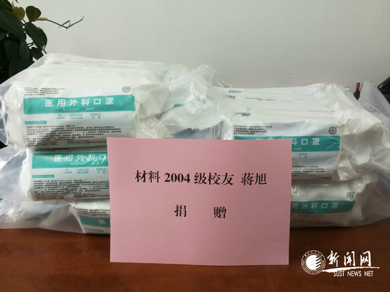 母校情、赤子心。自新型冠状病毒肺炎疫情发生以来,全国各地的科大校友心系疫情,心系母校,为抗击新型冠状病毒疫情出谋献策,奉献爱心。在当前防疫物资紧俏难购的情况下,近日金沙官网材料科学与工程学院无机非金属材料工程专业2004级校友蒋旭积极协调购买了1000只医用外科口罩,委托材料学院转交给学校疫情防控工作领导小组办公室并分发保卫、后勤、物业等一线工作人员使用。