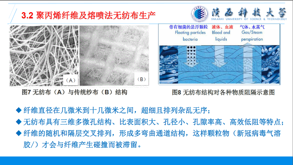 活动共分两个阶段。首先,党支部书记冯见艳同志带领全体党员对近期疫情防控的相关政策精神进行了学习。而后,她结合轻工学院特色专业非织造材料与工程相关知识,主讲了题为《预防新冠肺炎—医用口罩的结构和组成》的“云党课”。党课对口罩——这一特殊时期必备物品,从专业的角度进行“解剖”分析,重点对其无纺布材料组成及熔喷生产、防护机理及生产流程等进行解读,逐步把话题引向深入理解党中央“科学防控”主线,激励支部党员将所学专业与战“疫”相结合,奉献在前,学习在即,共抗疫情。