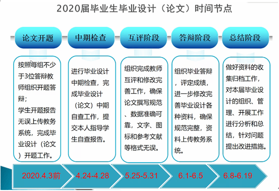 按照教育部、陕西省关于做好疫情防控工作的要求和学校“本科在线教学组织与实施方案”、“关于做好本科在线教学工作的通知”,本着“停课不停教,停课不停学,停课不停设计、停课不停研”的原则,教育学院提前筹划,扎实部署,多措并举,积极备战线上毕业设计(论文)指导工作。坚持一手抓疫情防控,一手抓毕业设计(论文),两手都要抓都要硬,做到早动手、早部署、早准备。确保毕业设计(论文)按期保质完成。