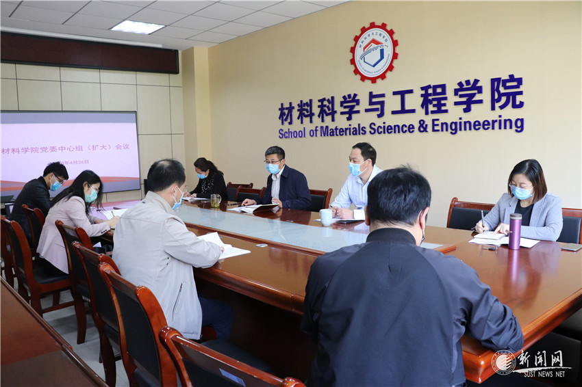 4月26日,材料科学与工程学院党委中心组召开(扩大)会议,传达学习习近平总书记来陕考察重要讲话重要指示精神,传达省委常委会(扩大)会议精神,并对全院范围内学习宣传和贯彻落实工作进行部署。院党委书记杨长安主持并讲话,院党委委员和行政班子成员参加会议。