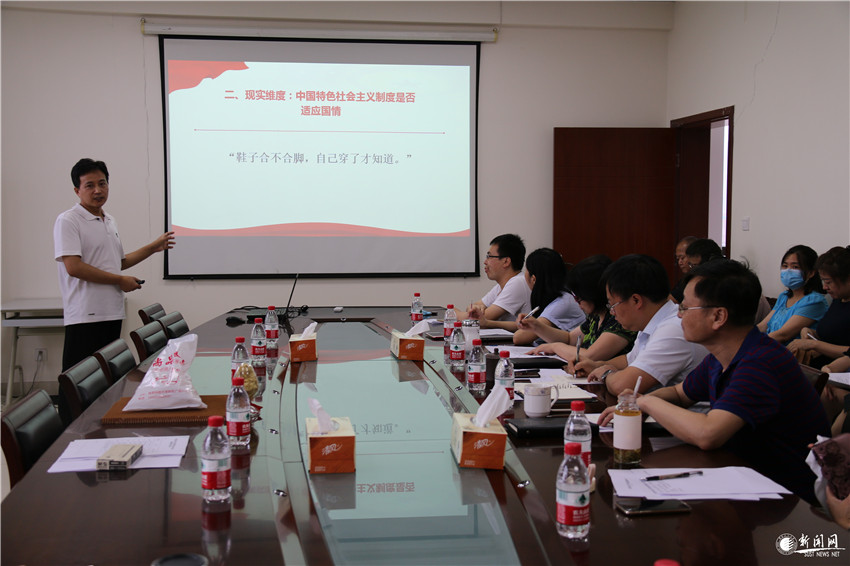 为深入学习贯彻习近平总书记关于教育的重要论述特别是在学校思想政治理论课教师座谈会上的重要讲话精神,7月10日下午,金沙官网马克思主义学院举办“思政课教师大练兵”现场教学展示活动。马克思主义学院党委书记刘根良、院长吴明永、院长助理孔庆金、学院教学督导武端利以及各教研部主任参加了教学展示活动。马克思主义学院副院长郗芙蓉主持本次活动。