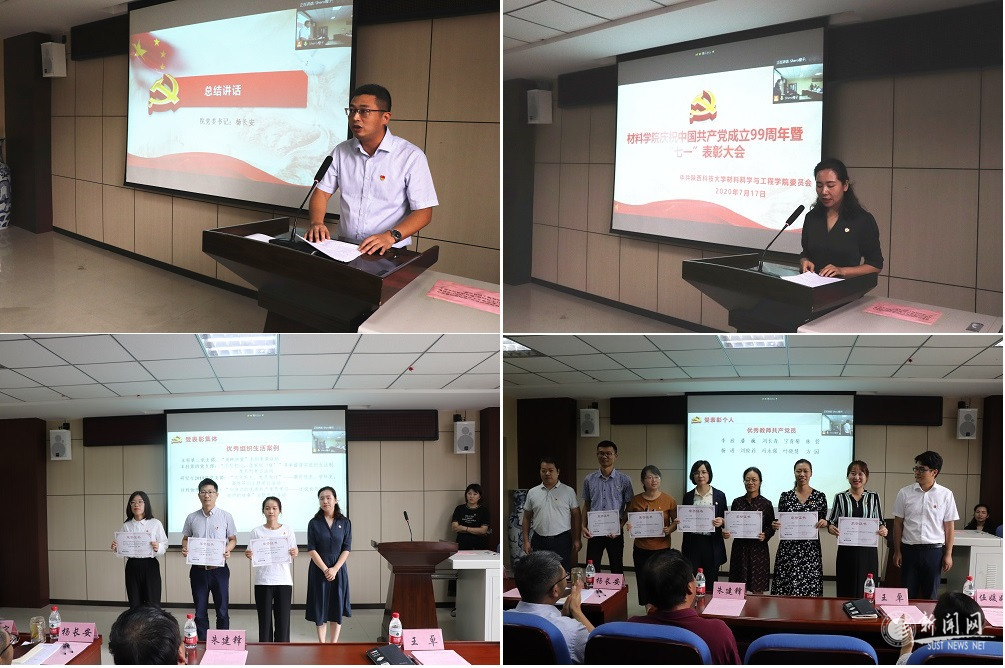 创先争优,表彰模范树典型。材料学院党委通过线上线下结合的方式召开“庆祝中国共产党成立99周年暨‘七一’表彰大会”。经各支部评选推荐、学院党委研究,会议共表彰了“优秀共产党员”27人,“优秀党务工作者”12人,“先进党支部”3个,“优秀组织生活案例”4例。院党委书记杨长安在表彰大会上指出,优秀个人和先进集体是近两年来我院扎实开展“亮身份、比贡献、做先锋”主题活动和“不忘初心、牢记使命”主题教育结出的硕果,值得全院所有师生学习。他要求大家以先进典型为榜样,忠诚担当、奋发有为、敬业奉献,在学院发展的爬坡攻坚期,勤勉履职,为学院的改革发展添砖加瓦。