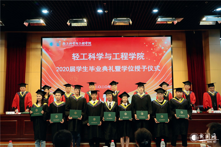 7月21日,轻工学院2020届毕业典礼暨学位授予仪式在图书馆报告厅隆重举行。典礼现场236名毕业生满怀欣喜,直播间里200余位未返校学子及家长深情守候,共同见证这神圣的高光时刻。学院党委书记李新平代表全院师生寄语毕业生,他以学院“明德笃实、创新致远”的院训,激励所有毕业生不断突破自我,迎接挑战。教师代表聂景怡深情寄语学生。毕业生代表张利鑫带头承诺践行科大精神,更加勇敢坚强的面对未来!毕业典礼在学生自制视频《仰望星空》和全场合唱《青春纪念册》的温馨歌声中落下帷幕。