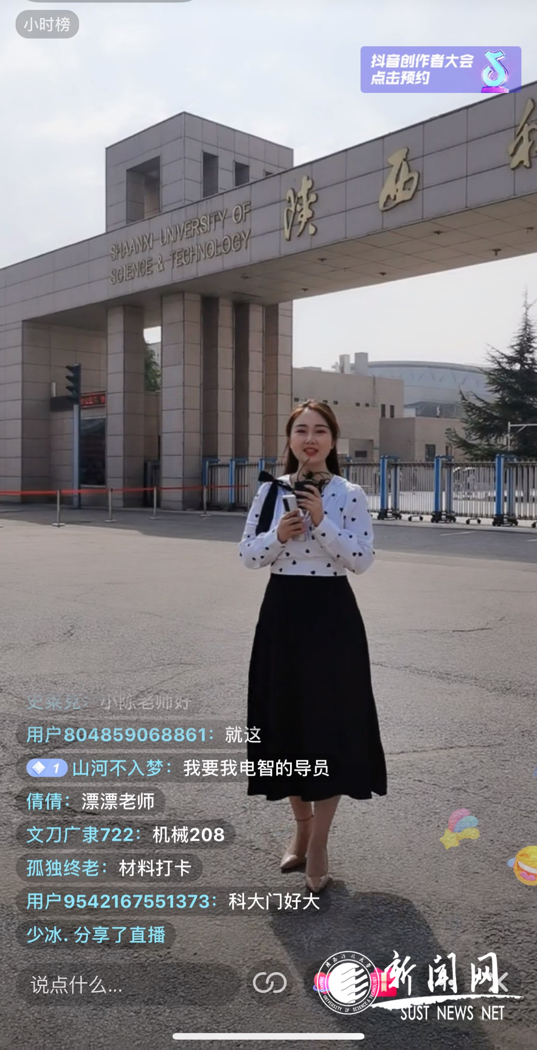 “大家好,这里是js3845金沙线路,欢迎大家来到‘新同学,我们在科大等你’的直播间,我们是2020级新生辅导员,今天,由我们带大家云游科大校园!”9月8日,由14名新生辅导员组成的主播团队带领尚未入校报道的新生们在校园里“走一走,瞧一瞧”,依托“陕科大易班”抖音公众号在直播间为大家提前开启大学生活。
