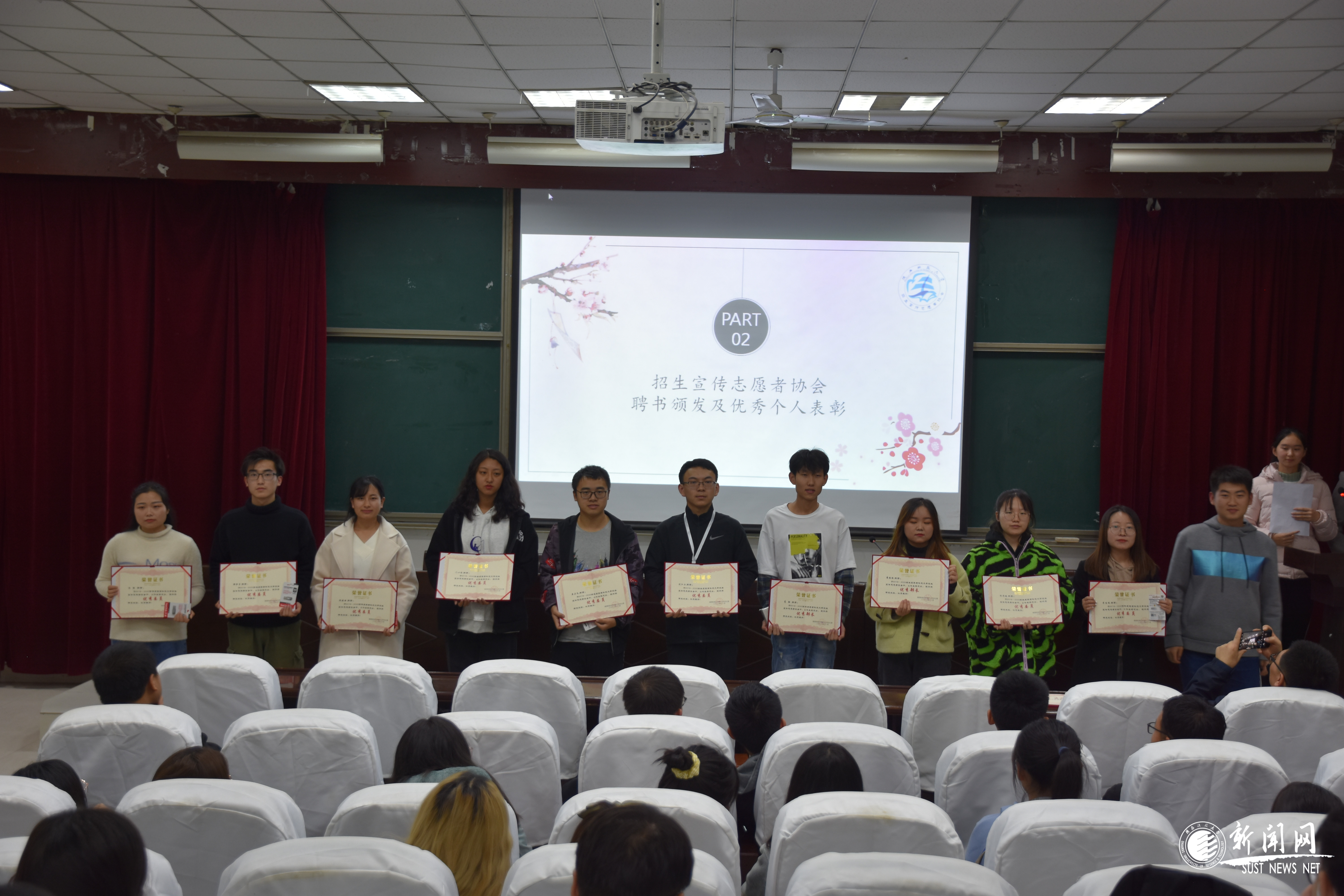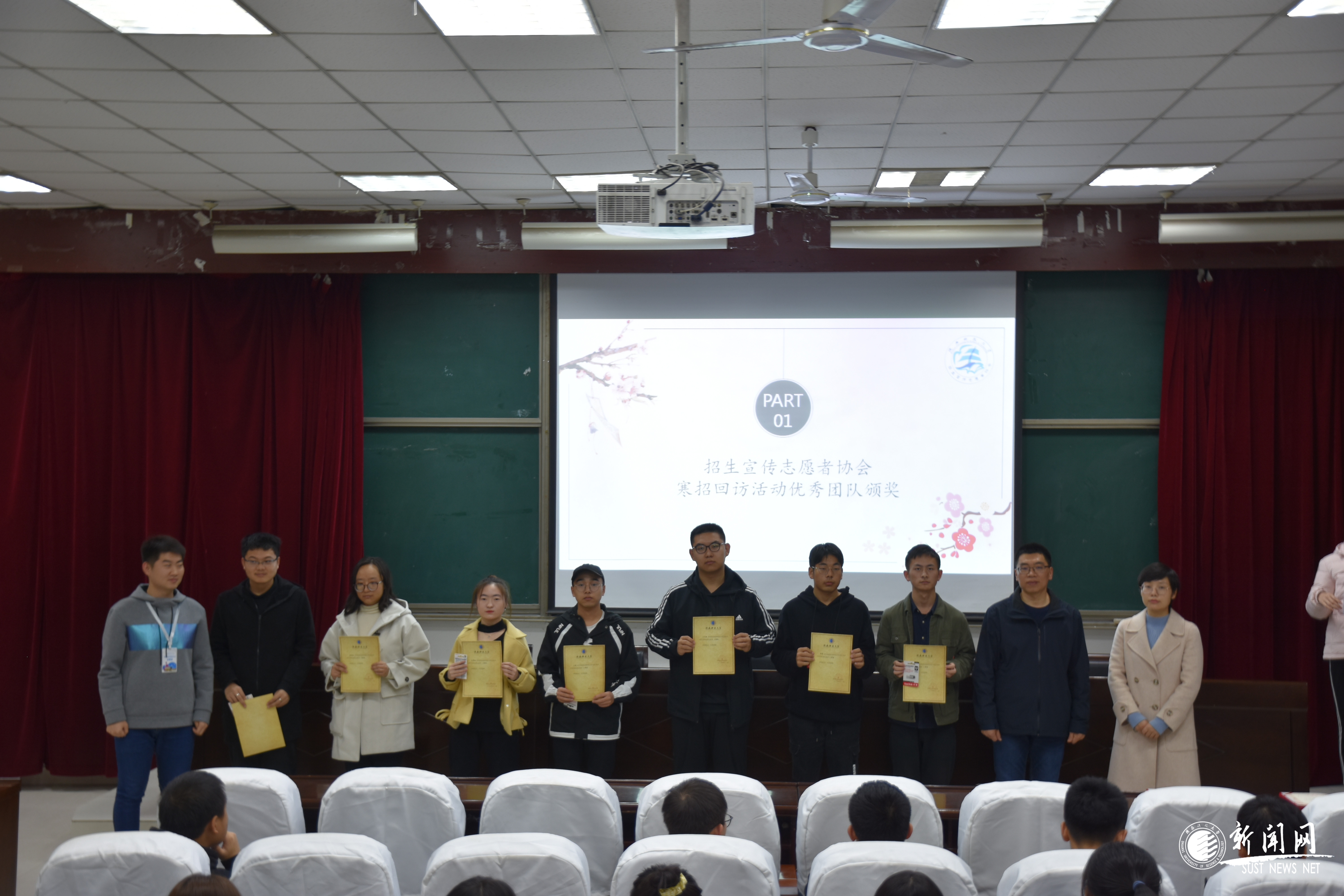 为进一步强化招生宣传常态化和招生宣传队伍建设,表彰在2020年招生宣传活动中表现突出的学生团队和个人,11月17日招生工作办公室在教三101举办2020年优秀招生宣传团队及个人颁奖大会。招生办指导老师、招生宣传志愿者协会全体成员及来自各学院的68名获奖学生参加了此次会议。