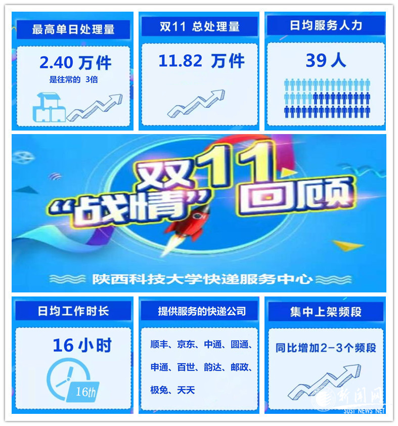“双十一”已进入尾声,在迎战快递业务量快速增长的背后,离不开一线人员的辛勤付出,离不开后勤管理工作者的提前布属。此次“双十一”保障工作的圆满落幕,反映了快递服务中心及各快递企业快速响应、同频共振、协同攻坚。快递服务中心将以次为契机,进一步深入合作,为快递中心服务持续改善打下了坚实基础。快递服务中心将始终秉承“不做则已,要做就做好”的理念,继续以“管理规范化、运营流程化、设备智慧化”为管理目标,持续为师生提供安全、便捷、高效的快递收发一站式服务。