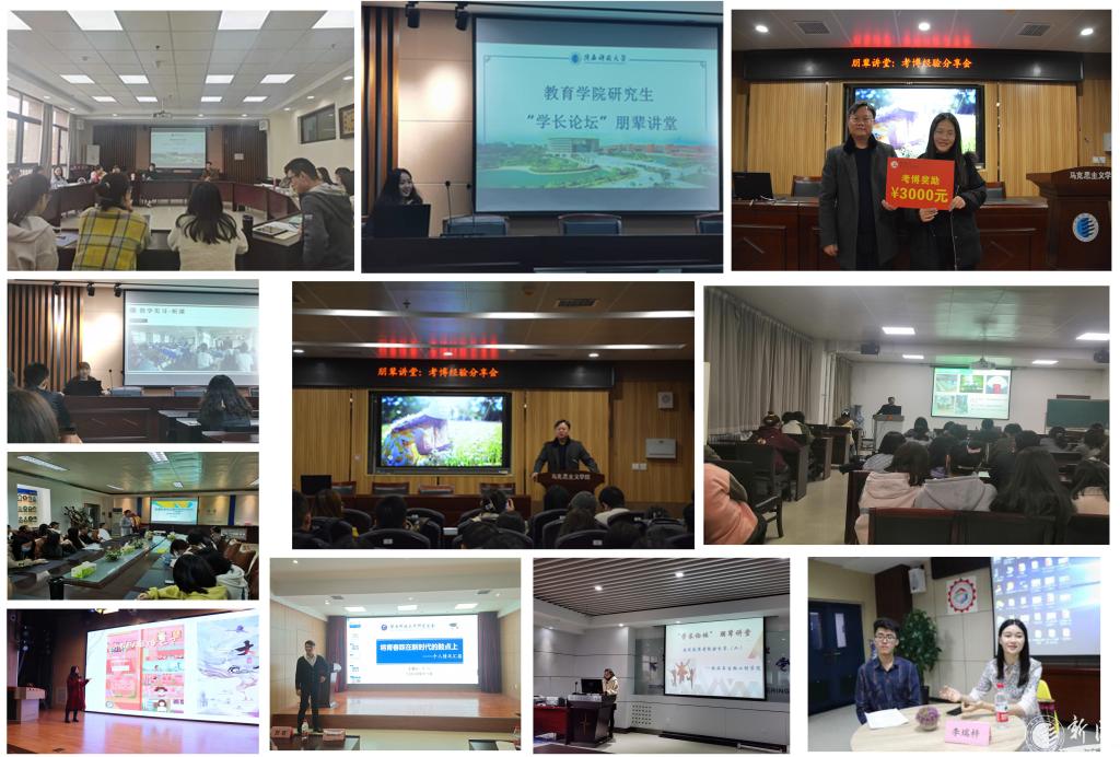 截止目前,13个学院共邀请了39名校内外优秀学长,开展了21期“学长论坛”朋辈讲堂。马克思主义学院邀请刚从金沙官网毕业、在西安交通大学和兰州大学就读博士的学长讲述考博经验,引导广大学子坚定科研学术路,并现场为2020届考取博士研究生的同学颁发3000元奖励;轻工、材料、化工、电智、文理等学院邀请专业学习、科学研究成就突出的学长做学业规划、科学研究方法心得报告;电控、机电、环境、文理等学院就如何参加研究生创新竞赛做经验介绍;经管、设艺、食品、教育等学院围绕研究生考证考级、求职、创业、综合素质提升等做交流分享。