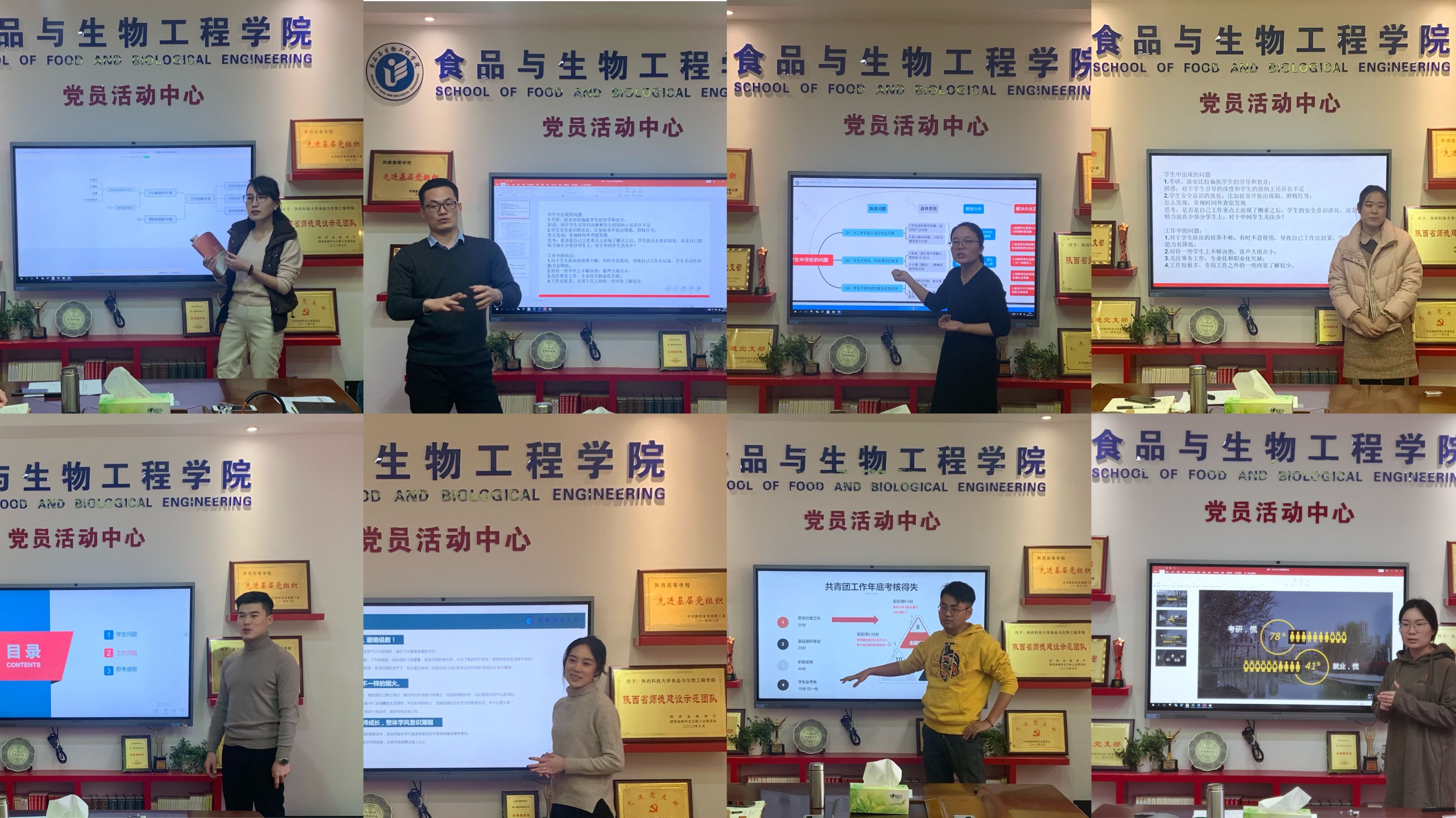 分管研究生的辅导员从“导学矛盾”入手,分析探讨如何有规划地开展好研究生日常思想政治教育,如何协同研究生导师一起做好学生心理帮扶及安全管理的问题;分管毕业班的辅导员就毕业生考研、就业目标高且思想较为偏执、安全意识逐渐淡薄等问题,深入分析原因,提出管理与教育的新思路、新方法;分管大三年级的辅导员研究了学生发展目标不清晰、学习状态焦虑和网络思想政治工作中内容创新不足、方式手段单一等问题,提出了针对性的改革思路;分管大二年级的辅导员从中途带班过程中的融洽师生关系建立及学生个性突出、干部综合素质不高等入手,对工作中存在问题进行了分析、提出了整改方案;分管大一年级的辅导员从学风、舍风建设中发生的具体问题切入,分享了自己对如何平衡好新生教育、管理、服务之间关系及做好辅导员不同角色转换的思考。通过明确问题、分析根源、交流讨论、总结提升四个环节,引导辅导员深刻反思工作不足、正视自身差距,积极探索在常态化疫情防控背景下开展工作的新思路、新方法。
