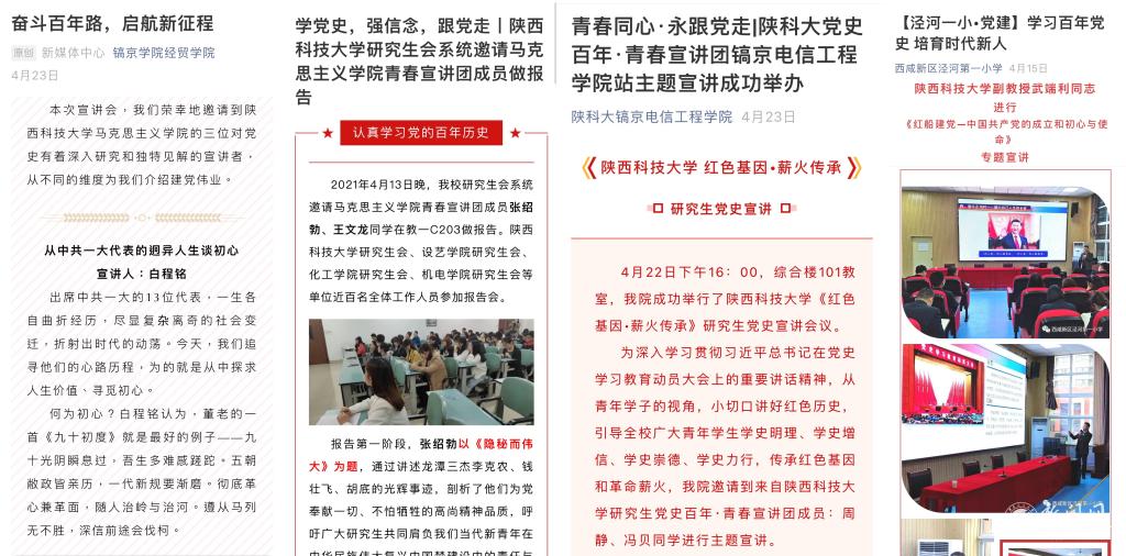 目前,宣讲团已成功加入“陕西高校青年爱国奋斗宣讲联盟”,后续将遴选优秀宣讲员深度参与到陕西大学生“青春告白祖国”党史学习教育微宣讲团宣讲活动中去。