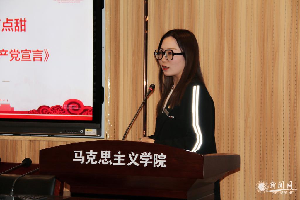 “手沾墨水口来尝,信仰味道终觉甜!”陈望道翻译首个中文全译本《共产党宣言》的佳话,从马克思主义学院2019级研究生党支部书记冯贝口中娓娓道来。这是她作为“红色基因•薪火传承”党史学习教育研究生宣讲团成员,为电控学院青年学生进行党史学习教育宣讲的开场白。