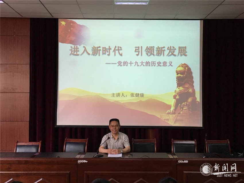 6月14日上午,张健康在西二楼报告厅为教工第一党支部全体党员上了一堂题为“进入新时代、引领新发展”的党课。张健康结合自身学习党的十九大精神的认识和体会,全面准确的阐述了党的十九大的重大历史意义,帮助党员同志进一步深入领会了十九大精神。