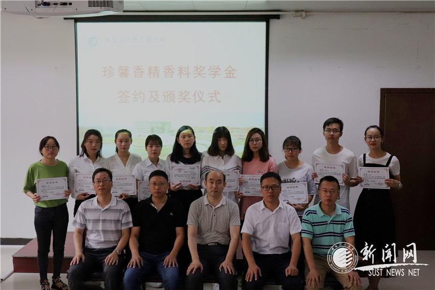 6月25日上午,广州仁恒医药科技股份有限公司和广州市珍馨香精香料有限公司两家校友企业奖助学金签约及颁奖仪式先后在食品与生物工程学院学术报告厅举行。广州珍馨香精香料有限公司董事长蒋金国(食品89级校友)、广州仁恒医药科技股份有限公司董事长田元(生化97级校友)、食品学院院长陈雪峰等学院相关负责人和师生代表参加了签约和颁奖仪式,仪式由院党委副书记(主持工作)訾荣禄主持。