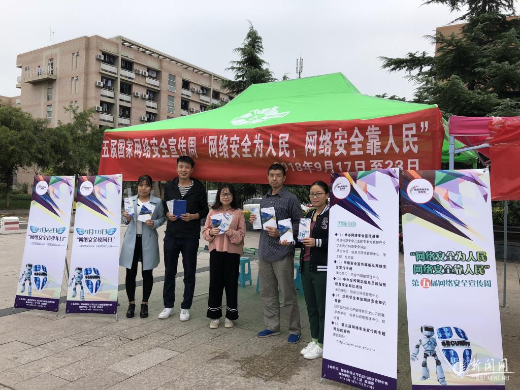 为响应第五届国家网络安全宣传周的号召,提升师生网络安全意识和安全防护技能,净化校园网络环境,9月17日至23日,由信息与网络管理中心主办、学工部及校团委协办的“2018年国家网络安全宣传周”系列活动在金沙官网举行。本次活动的主题为“网络安全为人民,网络安全靠人民”,通过网站、微信、易班等平台广泛宣传、举办大学生网络安全知识讲座、网络安全及信息员技能培训,以及学生区现场宣传活动等多种形式,让金沙官网师生了解网络安全的重要性。