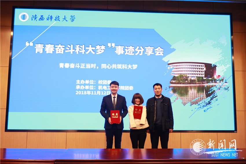此次大会特邀“中国好人”张元江、“全国向上向善好青年”李智华担任报告嘉宾。王政军代表机电学院团委特聘两人为“青春奋斗科大梦”事迹分享会讲师。