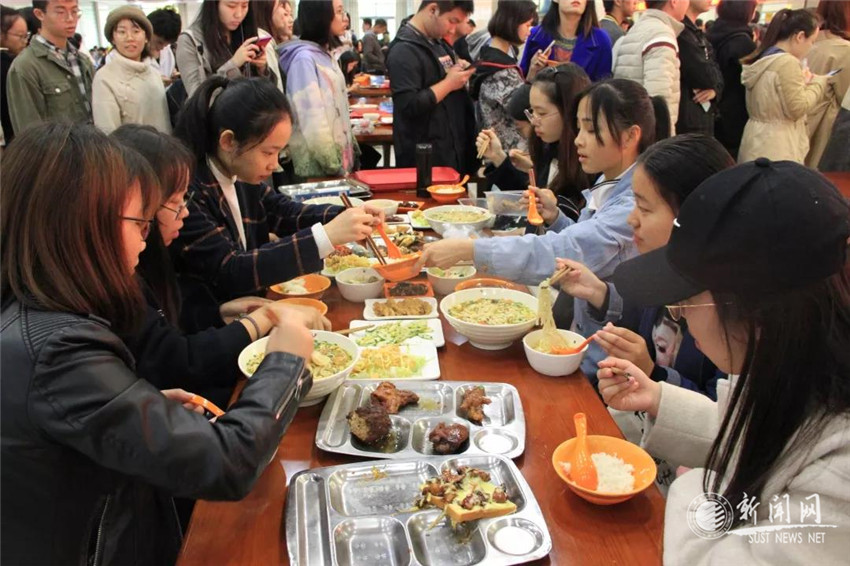 美食节上金沙官网张征、梁小龙两位厨师烹制的臊子面一经推出,大受欢迎,师生们在金沙官网交流窗口排起了四百多米长的队伍,迫不及待地品尝汤鲜味美的关中臊子面,一碗碗“薄、筋、光,煎、稀、汪,酸、辣、香”的臊子面让江南大学师生竖起大拇指,许多同学在品尝后表示:“臊子面酸辣鲜香,筋道弹牙,颇具西北风味,为师生的餐桌增添了一道亮丽的风景线,像这样的伙食交流很棒!”两位师傅还在现场为师生展示扯面技能,引来师生阵阵欢呼。