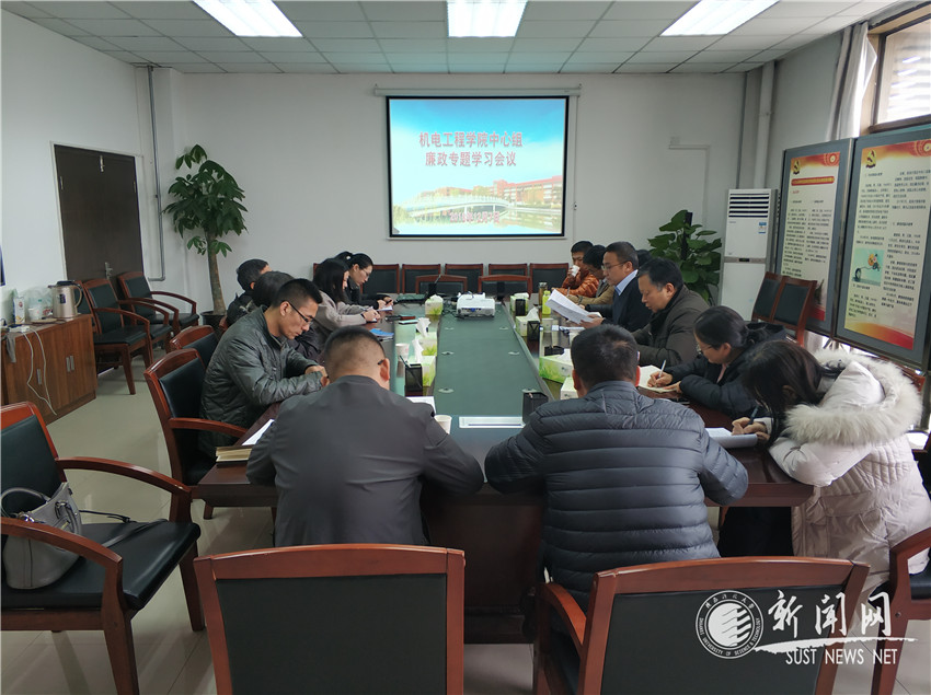 12月7日上午,金沙官网机电工程学院在校廉政教育基地召开廉政专题中心组(扩大)学习会议,集中学习《中国共产党纪律处分条例》(以下简称《条例》)。学院全体班子成员、党委委员、教工党支部书记、党政办公室主任和组织员参加了本次学习,会议由学院党委书记夏祥林主持。