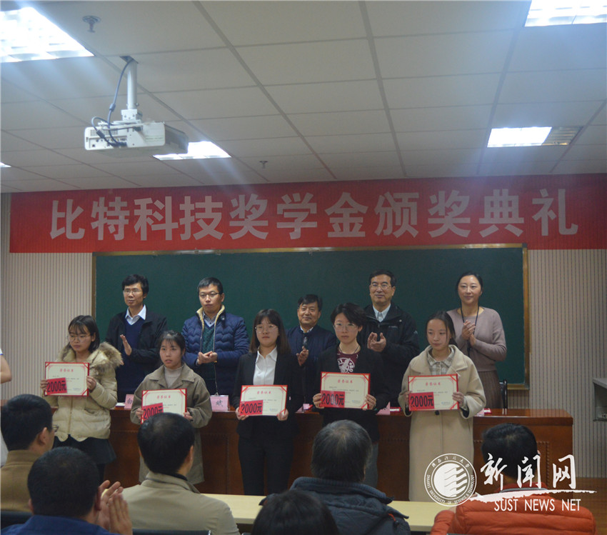12月13日下午,2018年“比特科技奖学金”颁奖典礼在理科楼440会议室举行。西安比特教育科技有限公司总经理杨斌、市场总监王景园,文理学院党委书记刘建科、院长蔺小林、副院长白云霄、院长助理彭丹、数学系主任侯再恩、数学系专业教研室主任、学院全体辅导员以及数学系学生代表参加此次颁奖典礼。
