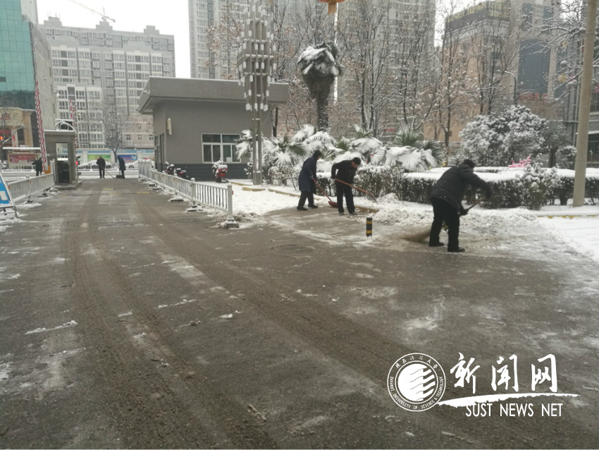 此次管委会共有20余人参加扫雪铲冰工作。截止上午9点,咸阳校区管委会的部分职工仍奋战在扫雪第一线……