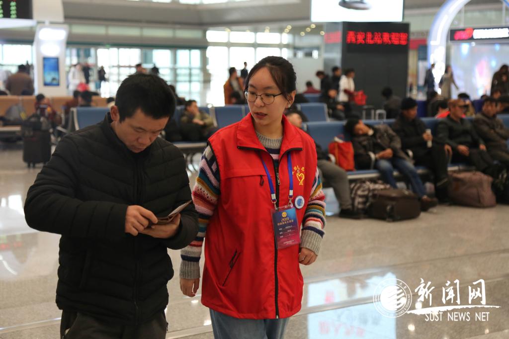 1月21日-2月22日,金沙官网有60名大学生志愿者参与到西安北站的春运志愿服务中。他们帮助旅客顺利通过闸机,协助旅客使用自助售票机器购票,帮着有需要的旅客搬运行李、抱孩子。“基本闲不下来,一直都有人问问题,一个班下来5个小时,几乎得不停说话带着旅客办理各种乘车手续。”春运志愿者许宗媛说。