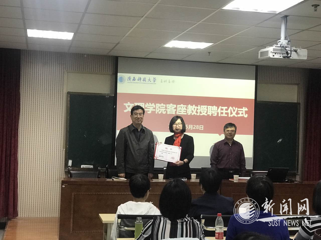 5月28日上午,文理学院举行客座教授聘任仪式,聘任上海浦东领航文化研究院副秘书长王壮菲为文理学院客座教授。文理学院院长蔺小林为王壮菲教授颁发聘书,学院党委书记刘建科致欢迎辞,聘任仪式由文理学院副院长李稳敏主持。文理学院外语系教师、翻译专业硕士研究生以及英语专业本科生参加了本次聘任仪式。