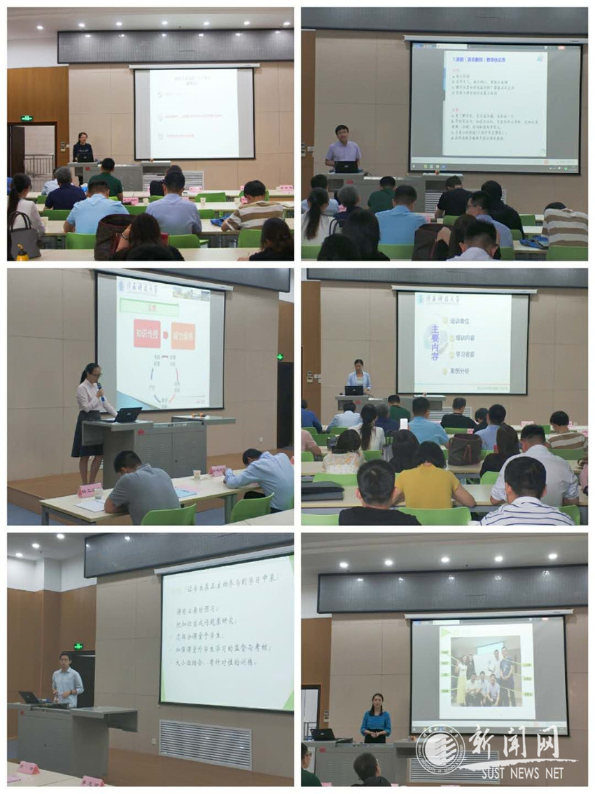汇报会上,李佩燚、田雨、郭文强等24位教师分别代表赴西交利物浦大学培训的学习小组进行发言。大家谈了通过培训对研究导向型教学的理解和认识,如何在今后的教学实践中从传统的“以教师为中心”的课程主导者转变为“以学生为中心”的学习支持和引导者。材料科学与工程学院许宁老师在培训结束后,对自己主讲的《材料科学与工程基础》(双语)课程进行了深入的反思,并对课程的教学目标和教学方案进行了改进,同时对课程的考核方式和评分标准也进行了重新设计。电子信息与人工智能学院郭文强老师在对学生的学习过程性评价中,引用了培训工作坊中学到的评价方法,从话题、展示内容、设计、参与度、时间管理等多维度对学生学习活动进行评价。设计与艺术学院张英老师在自己的课堂进行了对比教学,她通过改变教室桌椅的布局,引导学生进行分组讨论、互动教学,学生的学习效果明显好于传统教学模式。