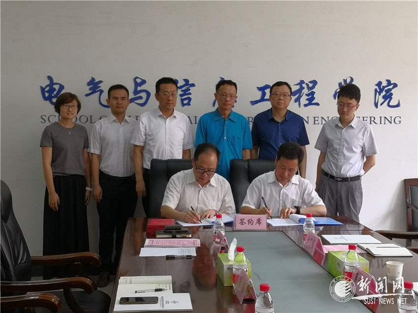 6月26日上午,西安金路交通工程科技发展有限责任公司与金沙官网电气与控制工程学院校企人才培养、实习基地签约仪式在实验楼2A204会议室举行。金沙官网电88级杰出校友、西安金路交通工程科技发展有限责任公司党委书记、董事长杨晓东,自动化83级杰出校友、西安金源电气股份有限公司董事长刘家兵,电86级杰出校友、陕西科泰应用技术有限公司总经理孟永红等一行5人以及电控学院班子成员出席了签约仪式。仪式由电控学院院长助理杨南主持。