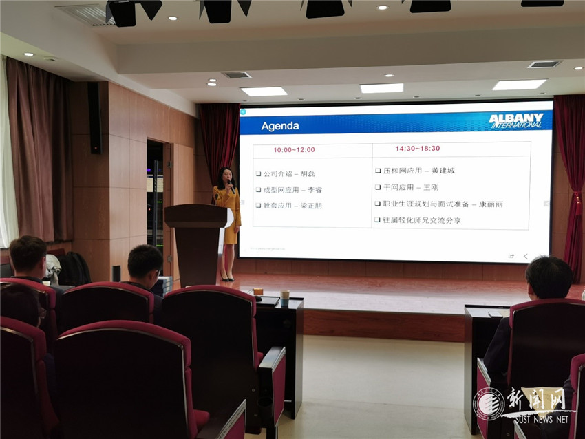 9月16日,轻工科学与工程学院造纸工程系在多功能学术厅举办了“前沿工程技术进课堂”系列专题讲座,邀请全球最大的纸机织物产销公司--奥伯尼国际有限公司的工程技术专家和人力资源专家为轻化工程专业(造纸方向)16级本科生进行专题讲座,介绍造纸成型网应用、压榨网应用、干网应用、靴套应用等行业前沿技术和职业生涯规划与面试准备等内容。