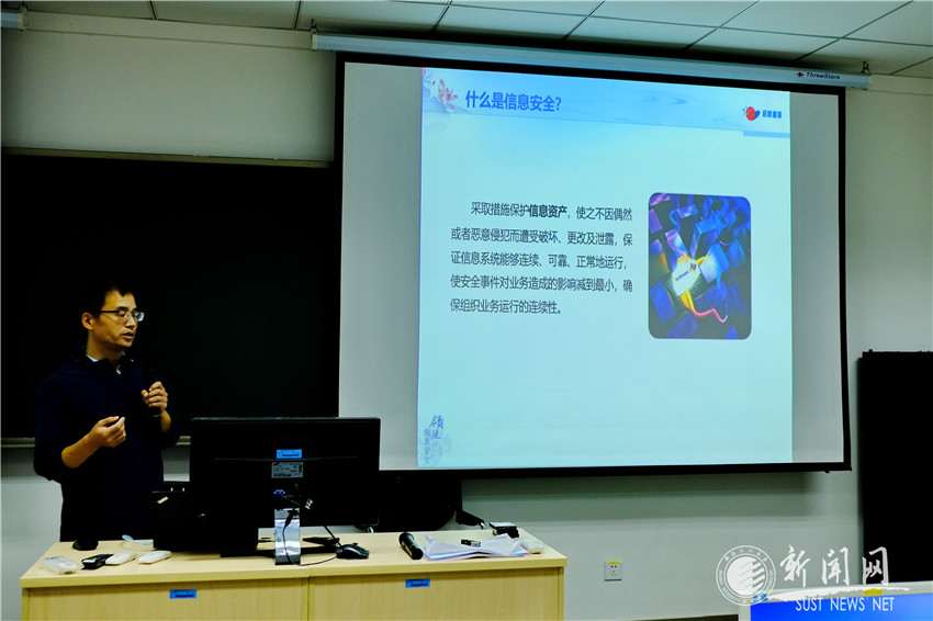 举办网络安全知识讲座。9月18日下午,由主办单位信息与网络管理中心、协办单位学工部组织的网络安全专题讲座在教四C-411会议室举行,特别邀请了西安建筑科技大学网络与信息化管理处刘欣老师为金沙官网大学生做了一场题为“网络与信息安全漫谈”的精彩讲座。本次网络安全讲座向同学们普及了网络安全知识,提升了金沙官网学生的网络安全意识,对于大学生们来说具有深远的意义。在当前网络环境下,网络安全与学习生活息息相关。重视网络安全,人人有责;防范恶意非法网络攻击,刻不容缓。