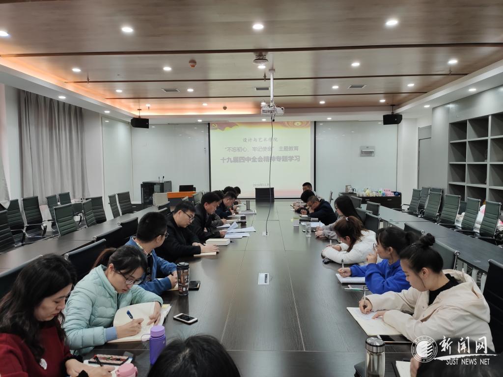 11月14日,设计与艺术学院党委中心组召开会议,集中学习了十九届四中全会精神,学院党委班子成员、党支部书记、教研室主任、辅导员参加学习,党委书记杜致博主持会议。