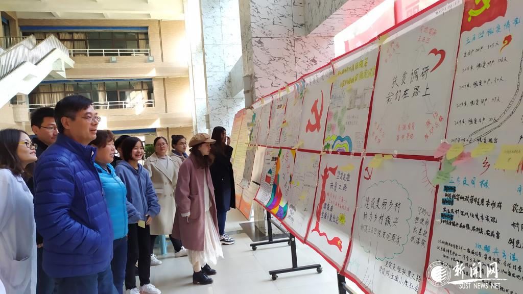 座谈结束后,姜兴健给全体学生党员就王石凹的基本情况、产业发展、设施建设和扶贫工作取得的成绩和现状,讲了一堂以“不忘初心,牢记使命,接续奋斗”为主题的现场党课,并带领全体党员在党员教育基地,参观了“js3845金沙线路驻王石凹村扶贫工作成就展”。集中学习结束后,全体党员分组围绕“美丽乡村”“教育扶贫”“健康扶贫”“产业扶贫”等方面,走进村庄、走进农户,实地调研了脱贫工作情况,并手绘调研成果海报。